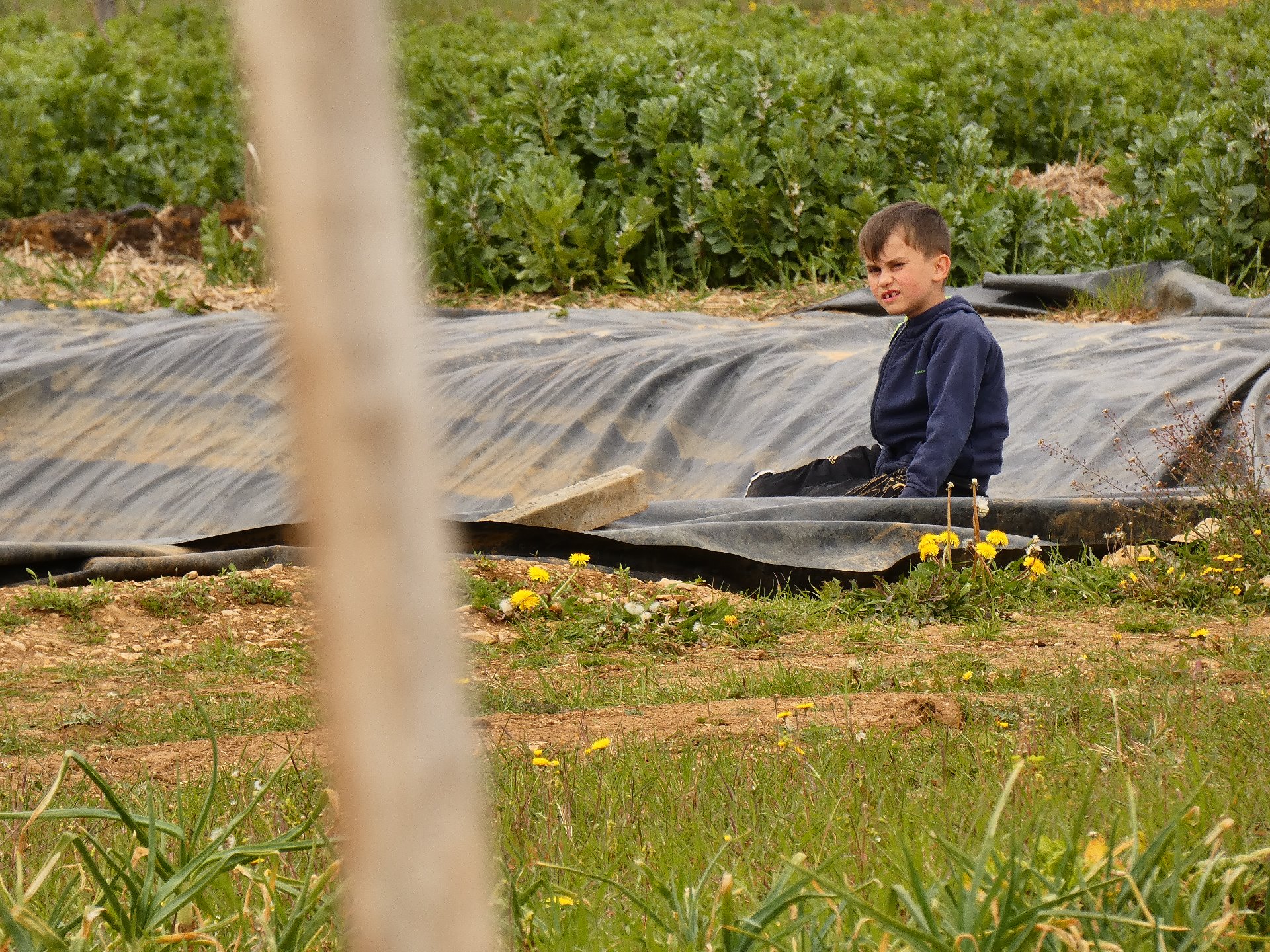 Alors que les légumes se font encore rares, l'activité à la ferme s'intensifie. Les plants sont tous prêts à être plantés ; les fèves et petits pois sont semés ; quelques épinards poussent en extérieur et sous la serre ; les tomates, poivrons et aubergines sont plantés sous la serre ; les carottes ont bien poussées sous la serre et d'autres ont été semés à l'extérieur tout près des oignons qui ont été replantés ; de nouveaux radis sont semés en extérieur ; les pommes de terre sont en terre, celles qui sont sous la serre ont bien profitées ; quelques salades et blettes sont en terre ; les premières courgettes sont installés dans la serre et à l'abri à l'extérieur ; le travail du sol continue pour accueillir les nouvelles plantations ...